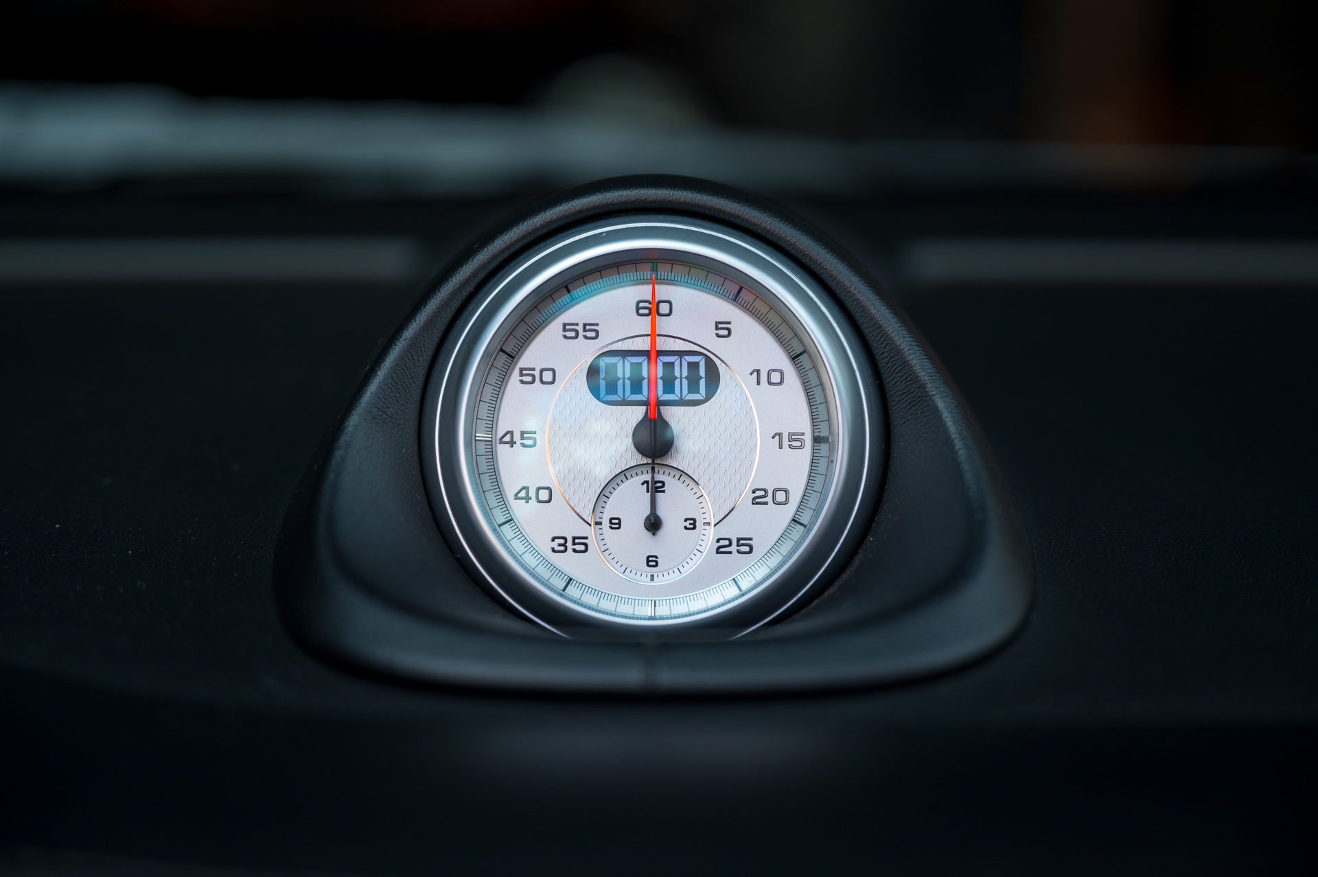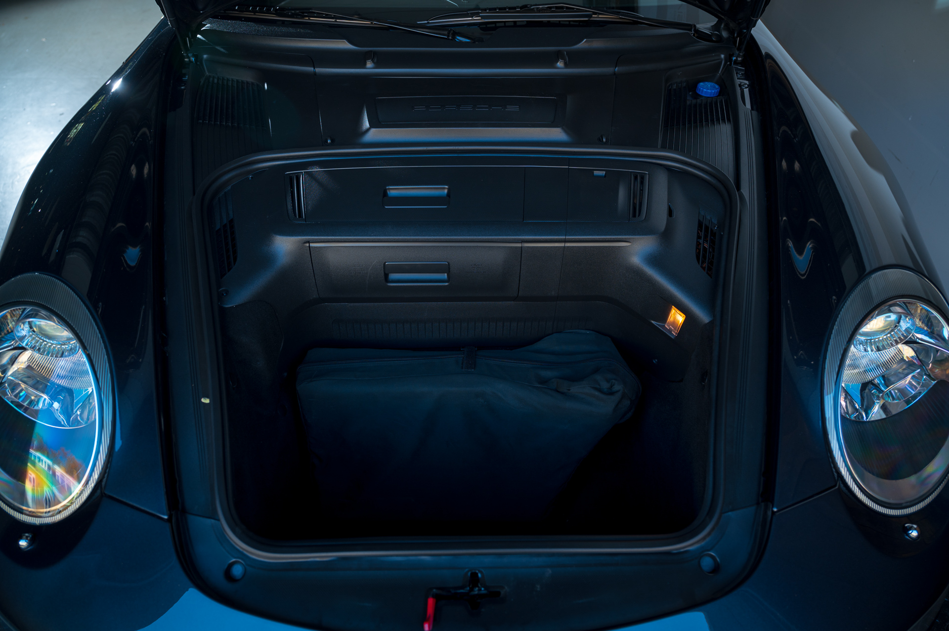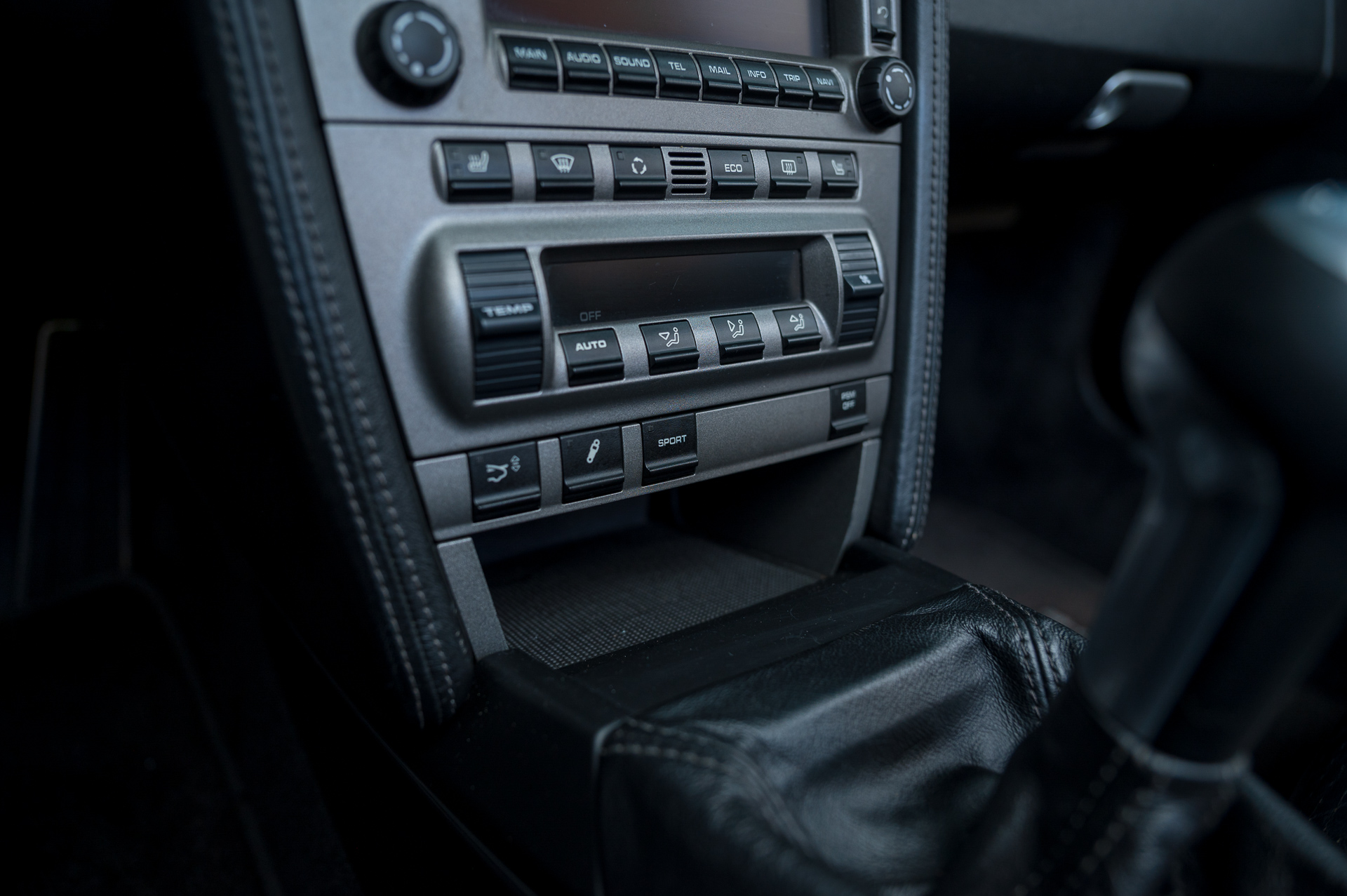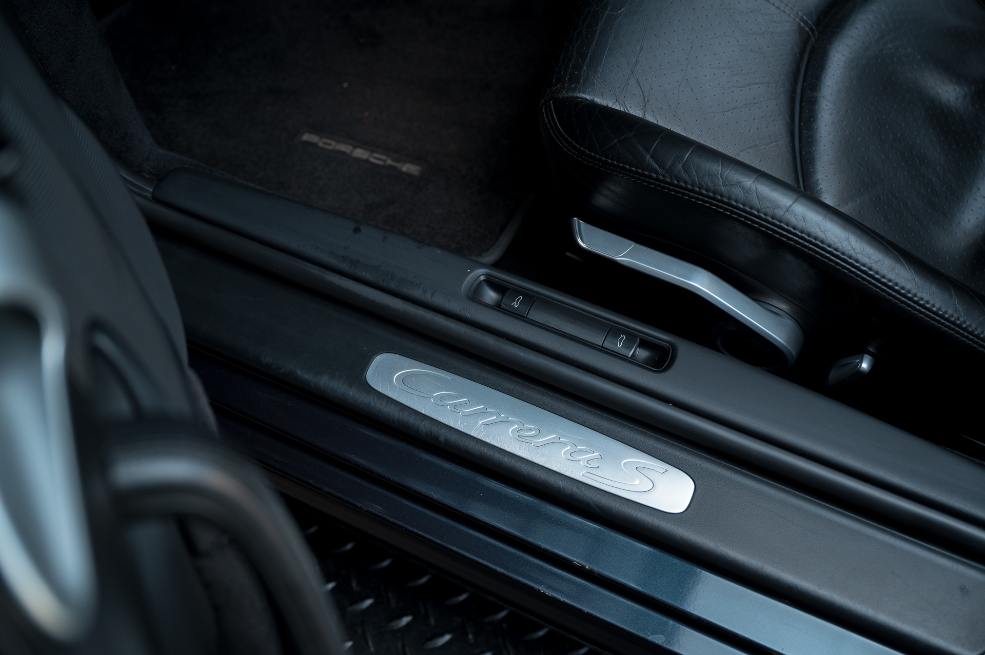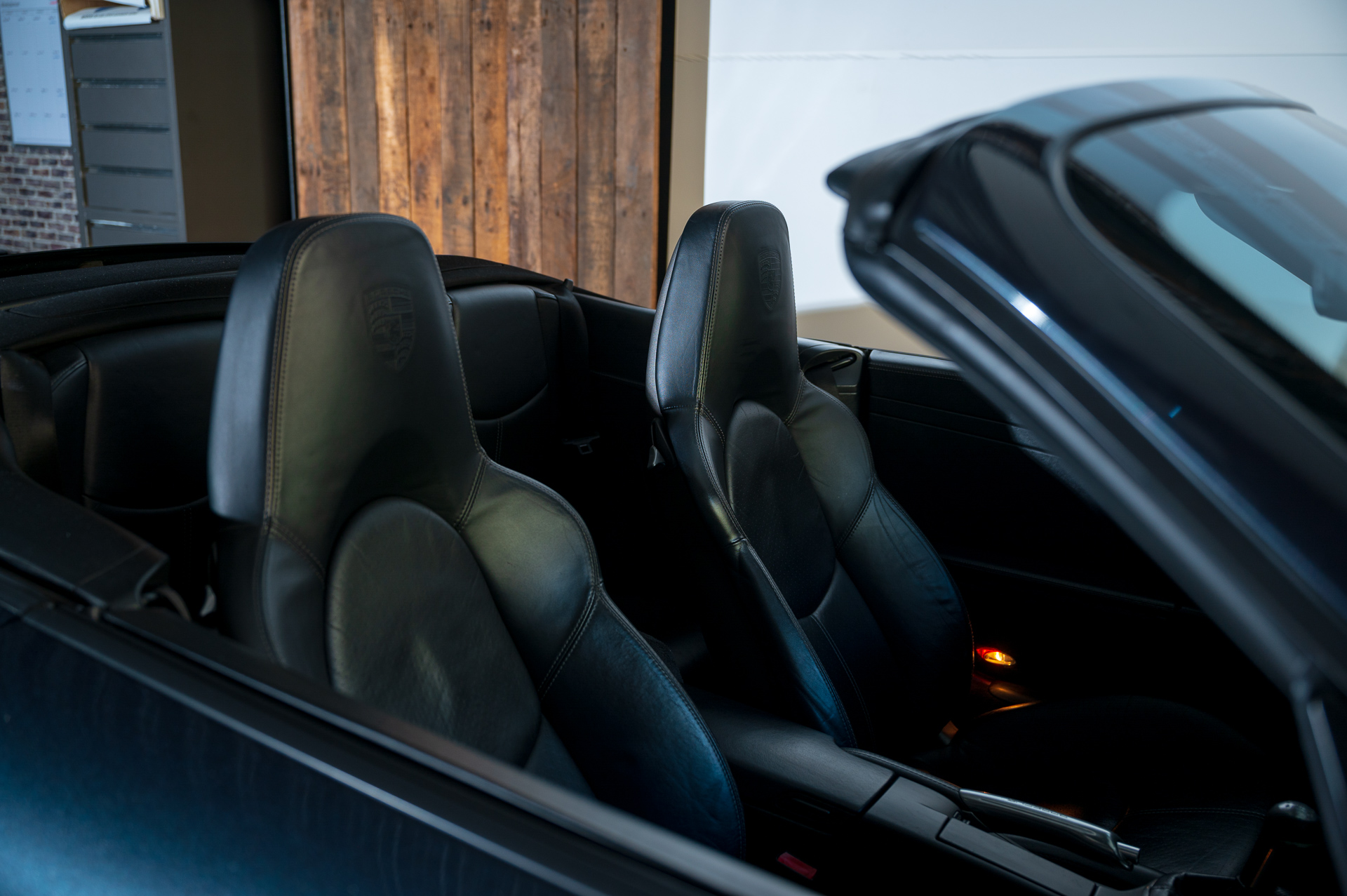De zeldzame carrosseriekleur Atlasgrau-metallic is ingetogen maar indrukwekkend – onder wisselend licht verandert hij subtiel van karakter, van blauw tot donkergrijs met een lichte gloed. Het geeft deze 997 Carrera S een onderscheidende, moderne uitstraling die zeldzaam is geworden op de weg. Zeker in combinatie met de 19” SportDesign wielen.